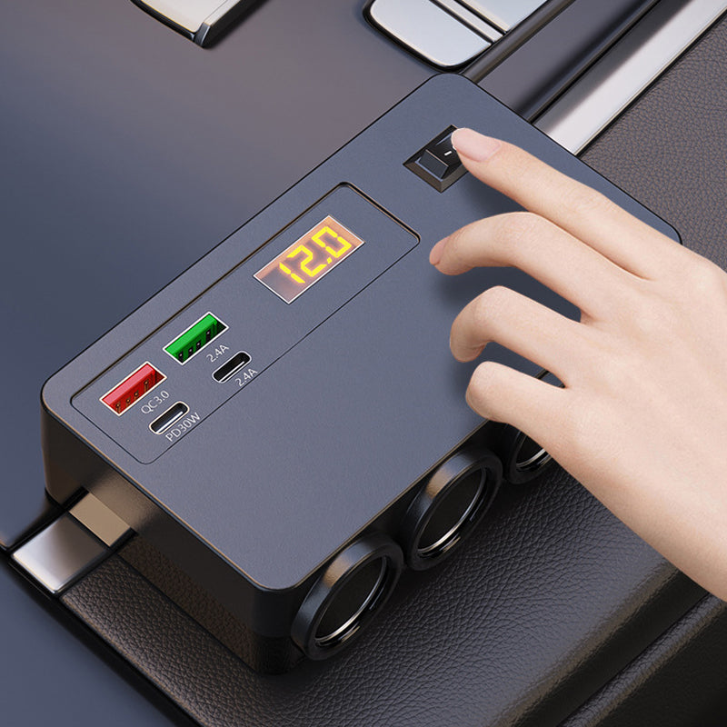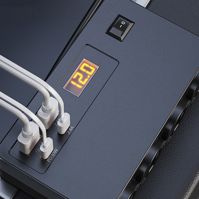 VERSATILE CHARGING HUB - Power up to seven devices simultaneously. Featuring four USB ports, including PD 30W and QC 3.0, and three cigarette lighter sockets, it ends charging conflicts during family road trips.
