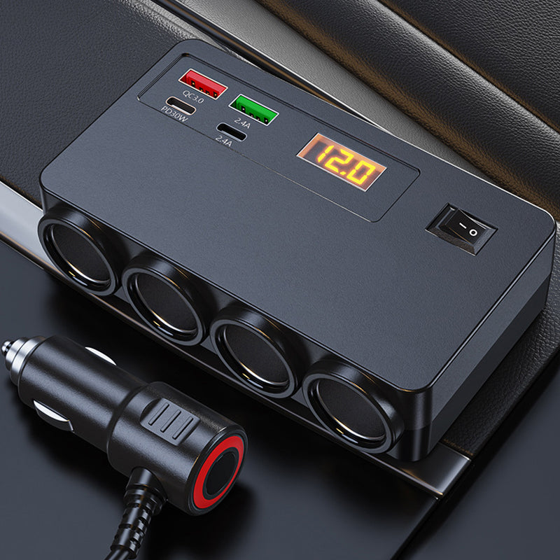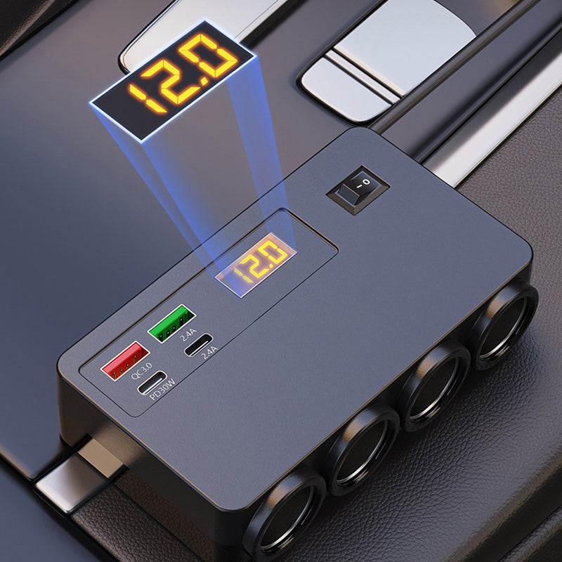 ๐ข๐ข50% OFF! ๐ 120W Cigarette Lighter Adapter โ 4 USB Ports (PD 30W + QC 3.0) + 3 Sockets, Real-Time Voltage Display! ๐โก