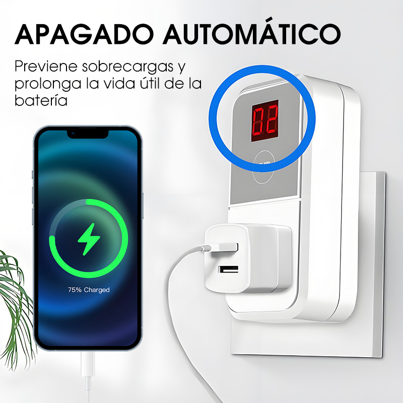 PROTECCIÓN AVANZADA CONTRA SOBRECARGA - Diseñada para cortar automáticamente la energía una vez que los dispositivos conectados, como teléfonos móviles o vehículos eléctricos, alcanzan la carga completa. Esta función crucial protege la salud de la batería, prolonga significativamente la vida útil de tus aparatos electrónicos y reduce el riesgo de sobrecalentamiento o daños por carga prolongada.