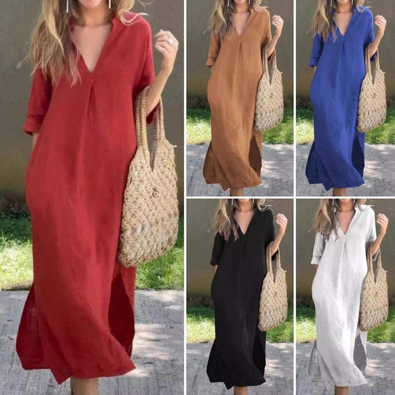 41%OFF🔥Elegante Vestido con Cuello en V y Abertura