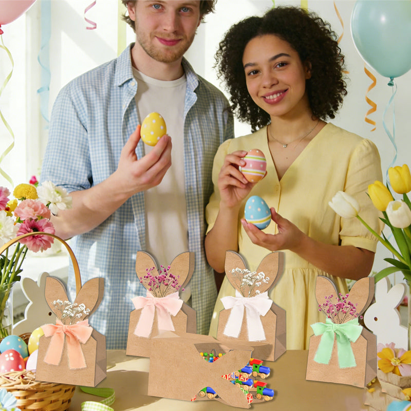 ๐ 34% OFF! ๐ 24-Pack Easter Bunny Paper Gift Bags with Ribbons โ Festive Rabbit Ear Design, Durable Kraft & Easy Assembly ๐ฐ๐