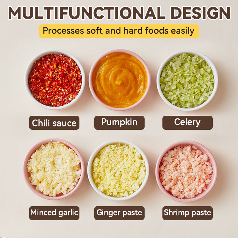 1.8L LARGE CAPACITY - Designed with a spacious 1.8-liter bowl, this grinder efficiently handles large batches of food in one go. It's perfect for preparing meals for families, gatherings, or conveniently storing meals for the week ahead.