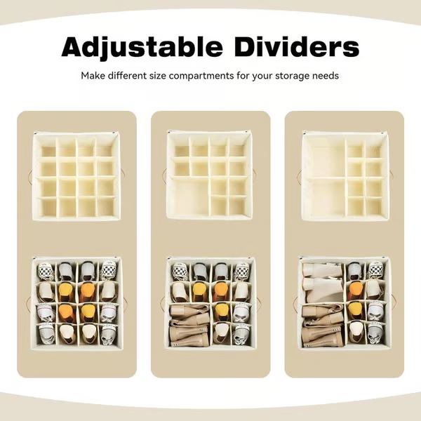 FÁCIL DE MOVER: Cuenta con dos asas reforzadas con remaches, que son más duraderas que las asas cosidas tradicionales; la caja organizadora para sandalias/chancletas puede soportar cargas más pesadas y moverse sin esfuerzo. Ya sea que estés empujando, tirando o cargando tus artículos, el diseño de correa de maleta en la parte trasera de la cesta para zapatos brinda una portabilidad máxima para viajar o mudarte.