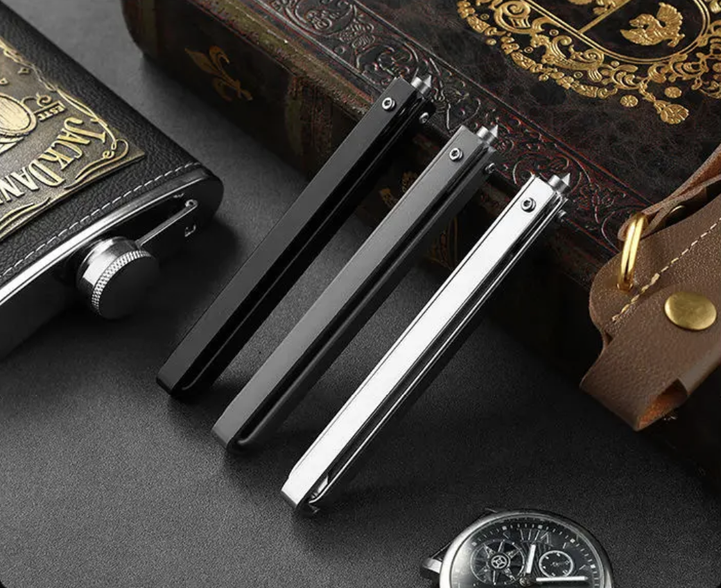 Ala de aleación de titanio TC4 con proceso CNC a mano, con hoja de acero M390.