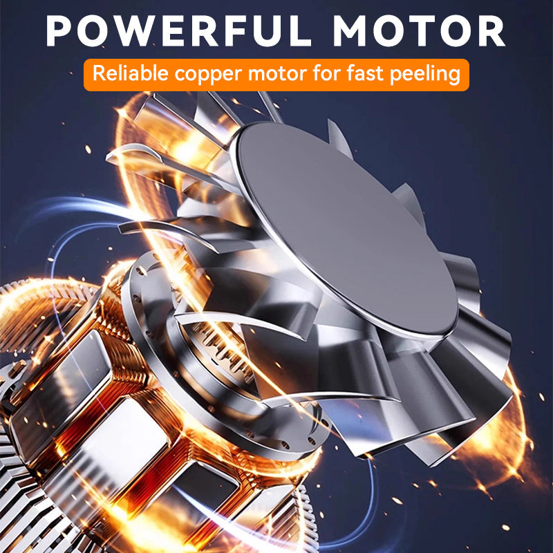 POTENTE MOTOR DE ALAMBRE DE COBRE: equipado con un motor de alambre de cobre de alto rendimiento, este pelador eléctrico garantiza un pelado eficaz y rápido de diversas frutas y verduras. El motor proporciona una potencia constante, lo que permite pelar sin esfuerzo incluso las frutas pequeñas sin que se cale ni pierda rendimiento. Su durabilidad y fiabilidad lo convierten en un complemento que ahorra tiempo en cualquier cocina.