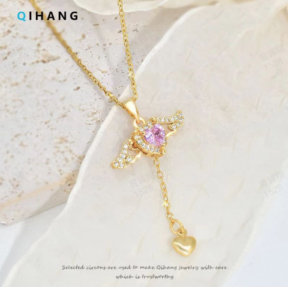 💖Para aquellos a quienes amas, incluyéndote a ti mismo.💖Collar con alas de ángel rosas
