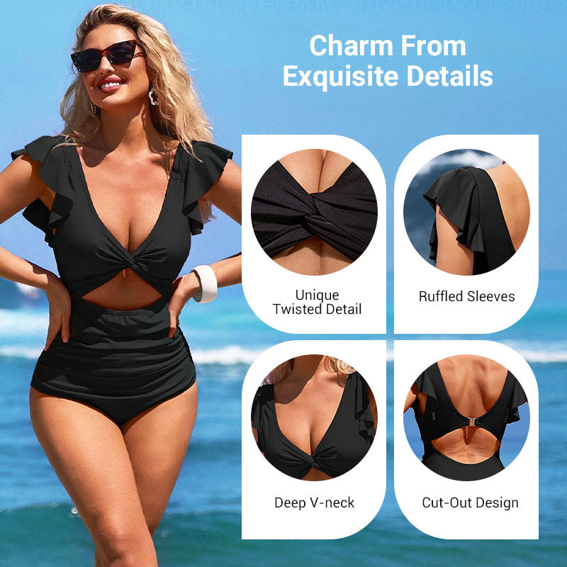 ๐ 50% OFF! ๐ Sexy Ruffled One-Piece Swimsuit โ Flattering Cut, Elegant Details & Confident Beach Style ๐๐
