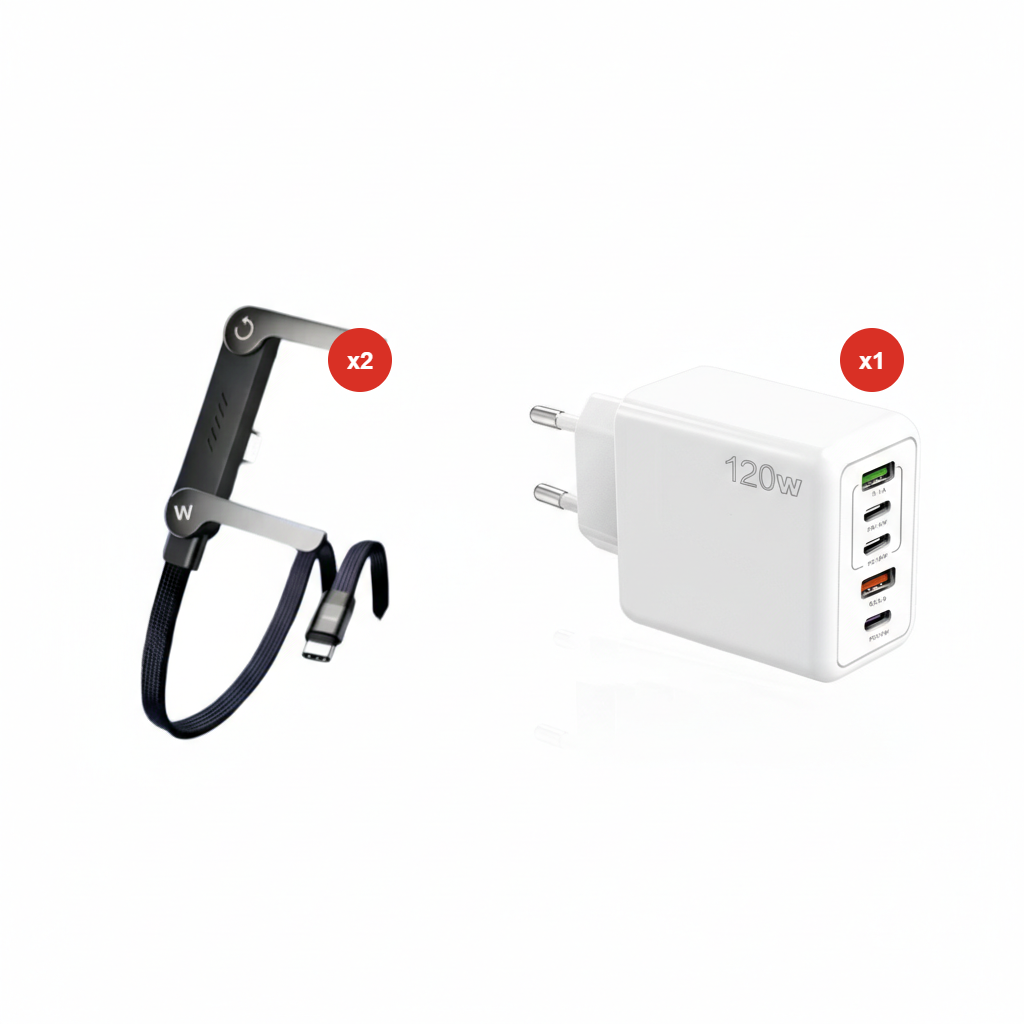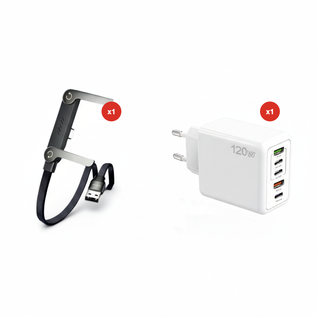 Ricarica Super Rapida 240W + Supporto Pieghevole Integrato + Compatibilità Universale + Design Durevole + Portatile – Ideale per Giocare, Lavorare e Vedere Video! 🎮