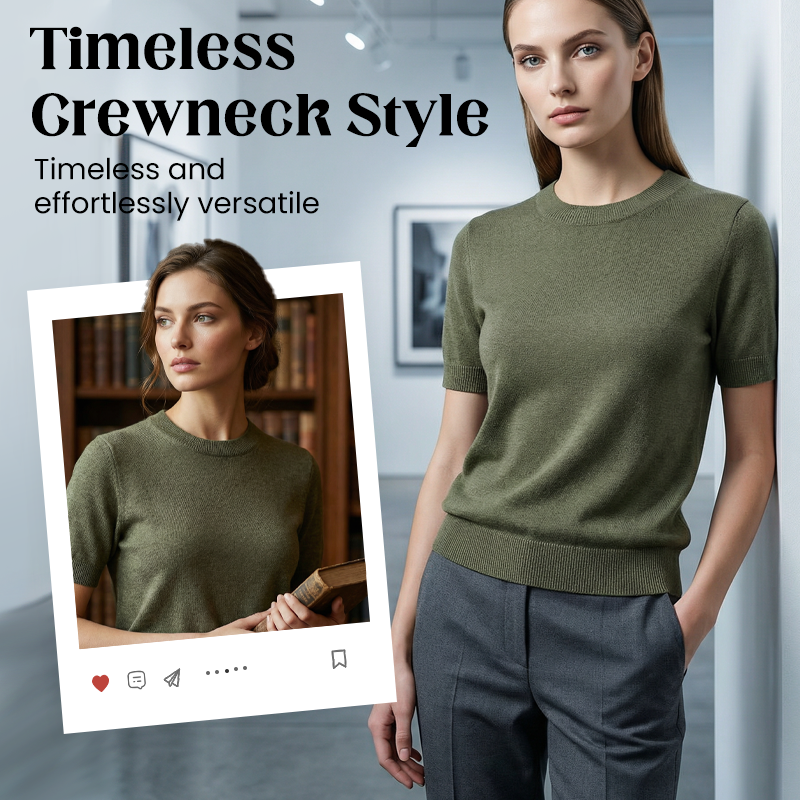 TIMELESS CREWNECK DESIGN - Offers a timeless and versatile neckline that elegantly frames your face. This timeless cut provides a sophisticated foundation for any outfit, perfect for both casual outings and more polished, layered looks.