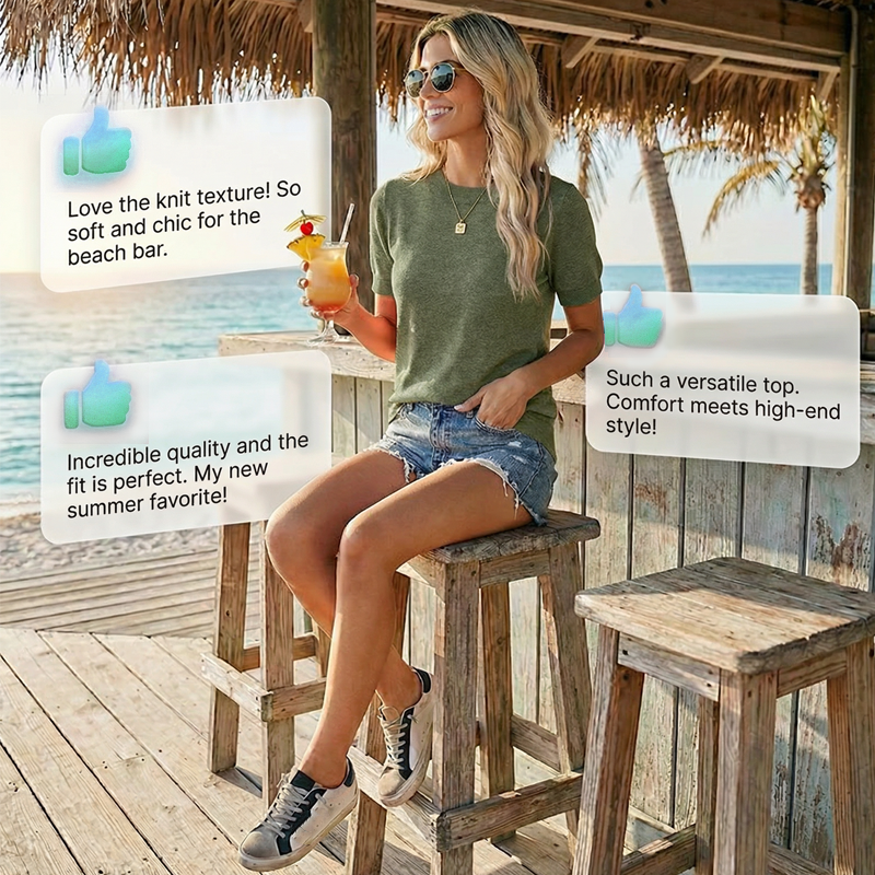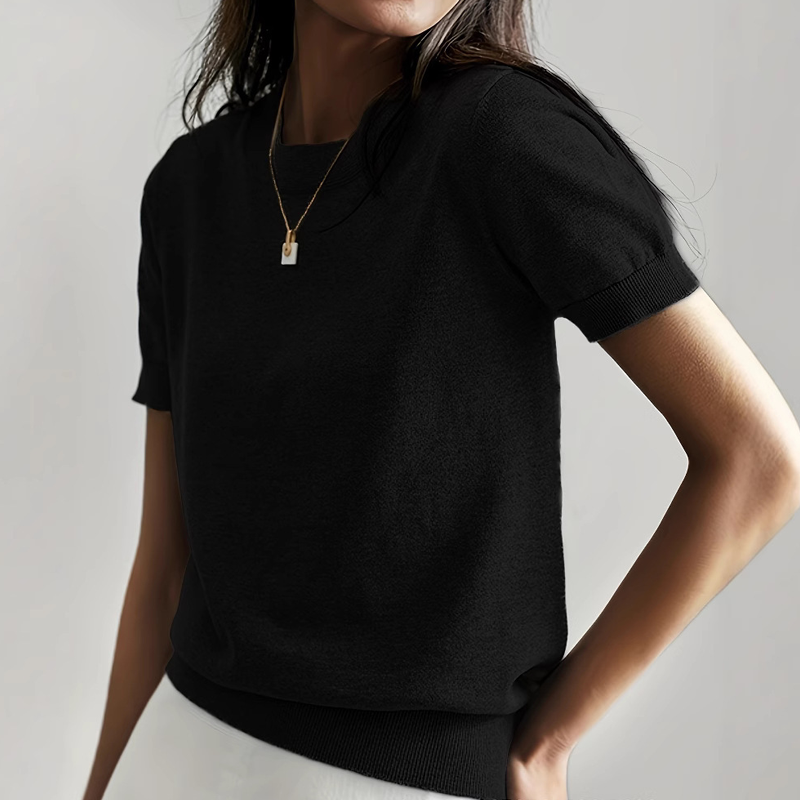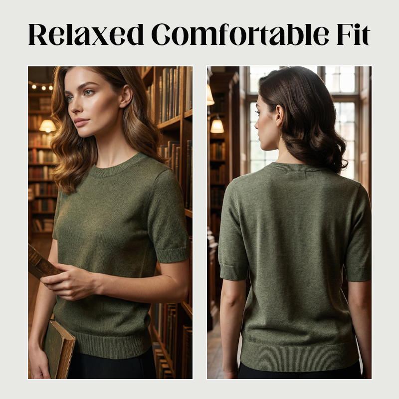 💎 60% OFF! 💎 Women’s Crew Neck Short Sleeve Knit Top – Lightweight, Relaxed Fit & Timeless Solid Colors 👚🌿